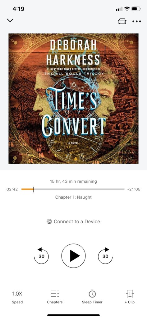 As you read the book, we all get an update on Diana and Matthew as well as the twins and boooooy, they are a handful. I loved how we all see how they handle life as they progress in life, and the word ” time” is used as it is a matter of looking back at the past and truly accepting that the past made us who we are today. ” Time ” is the journey we go on facing the pain of the past and accept that we can’t change what we did before, but like i said earlier, we can learn and not repeat the past. We create our future and make it to something we love. I listened to time Convert on Audible narrated by Saskia Maarleveld, and I bought and read it on my Nook Paper White. Both versions are worth pursuing, and I can say i enjoyed this book as a whole.